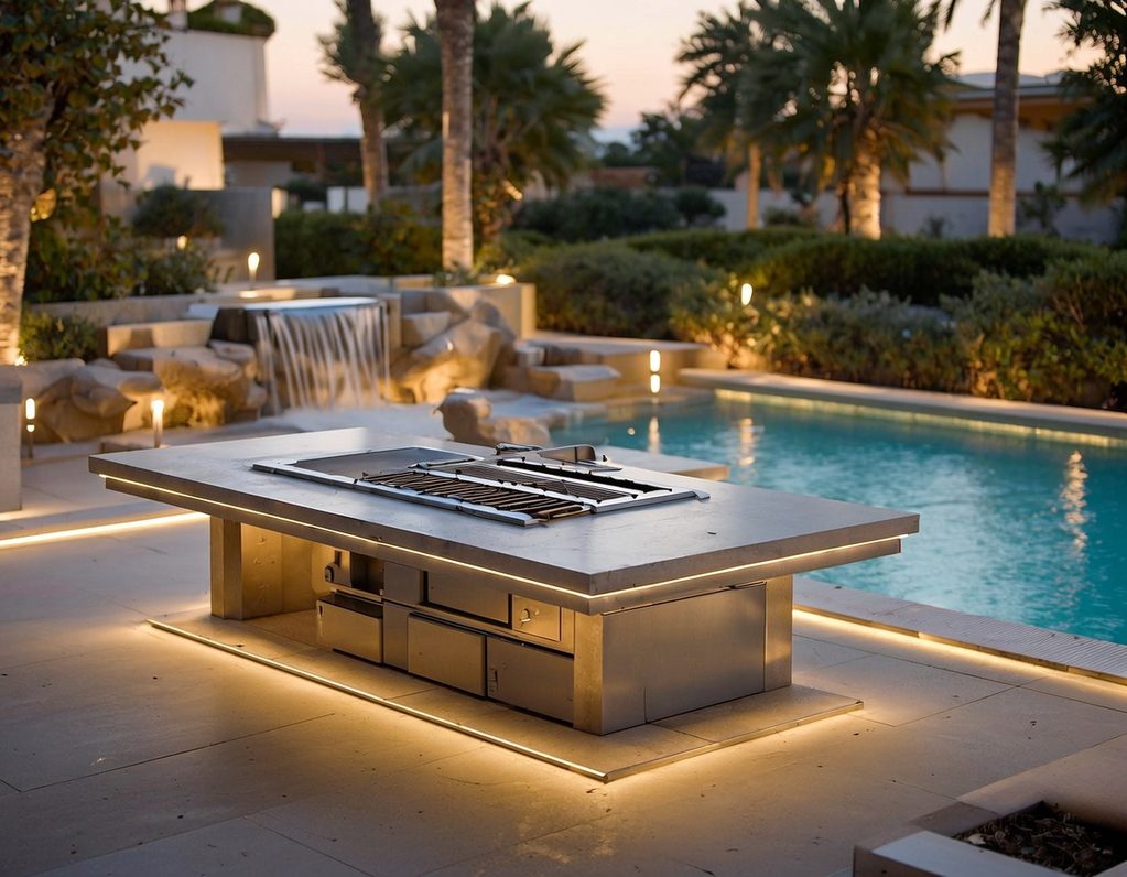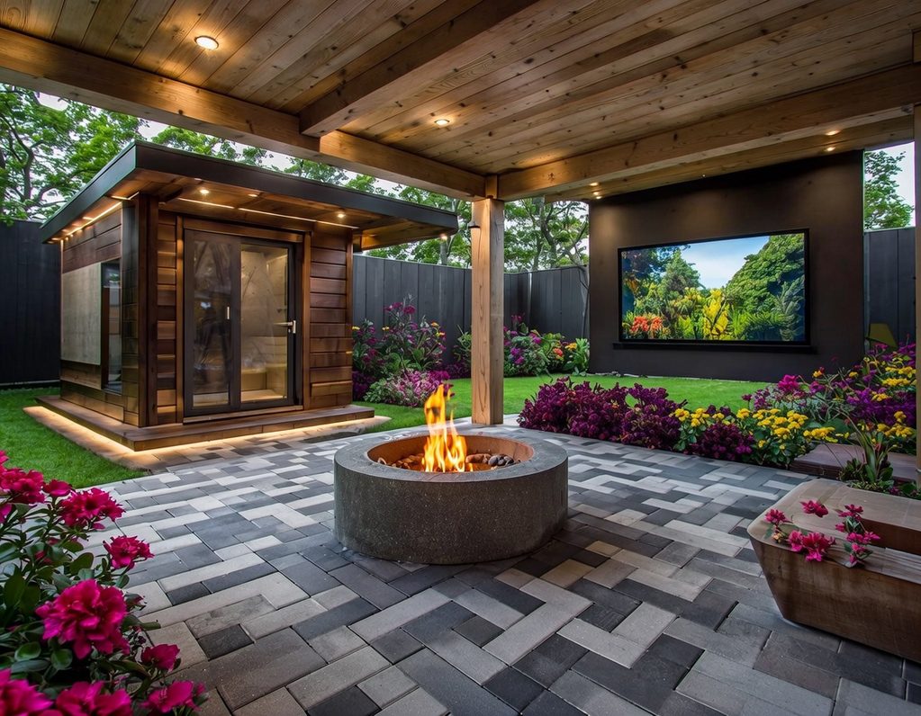 We specialize in custom backyard transformations featuring waterfalls, stone BBQ pits, pavers, turf, and expert tree and grass planting combined with modern electrical setups for lighting, TVs, and fans.